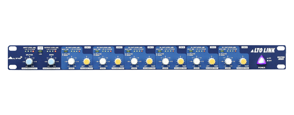 Alto Link Selectable 8 In/2 Out Mixer/Splitter bisa menjadi mixer atau splitter untuk beberapa channel. Alat ini menghadirkan headroom luas untuk suara yang unggul, dan processor yang hebat untuk live atau studio splitting dan aplikasi mixing.