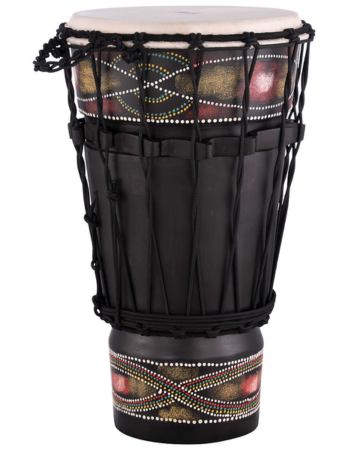 Rope Tuned Wood Ashiko Pearl menampilkan sentuhan akhir tribal yang dilukis dengan tangan yang indah. Asal usul drum Ashiko dapat ditelusuri kembali ke Afrika Barat dan suku Yoruba. Ashiko adalah kerabat dekat dari djembe dan suaranya saling melengkapi dengan djembe ketika dimainkan bersama dalam lingkaran drum atau ansambel. Silinder panjang meruncing dari Ashiko menghasilkan nada bass yang lebih rendah daripada djembe, dengan nada tengah yang tebal. Diukir dari batang kayu Mahoni yang kokoh, Pearl Ashiko memiliki tinggi 22 inci dan dilengkapi dengan head dari kulit kambing berukuran 12 inci. Tuner 14 EZ Twist Rope terpasang, memungkinkan Anda untuk menaikkan nada drum dengan cepat.