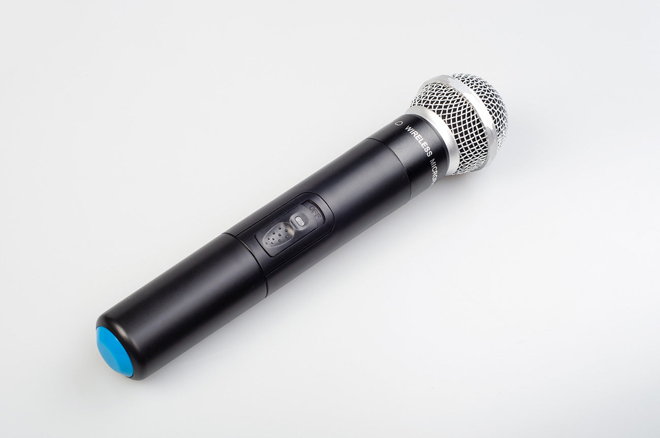 Equipped with hand microphone and wireless head-mounted microphone