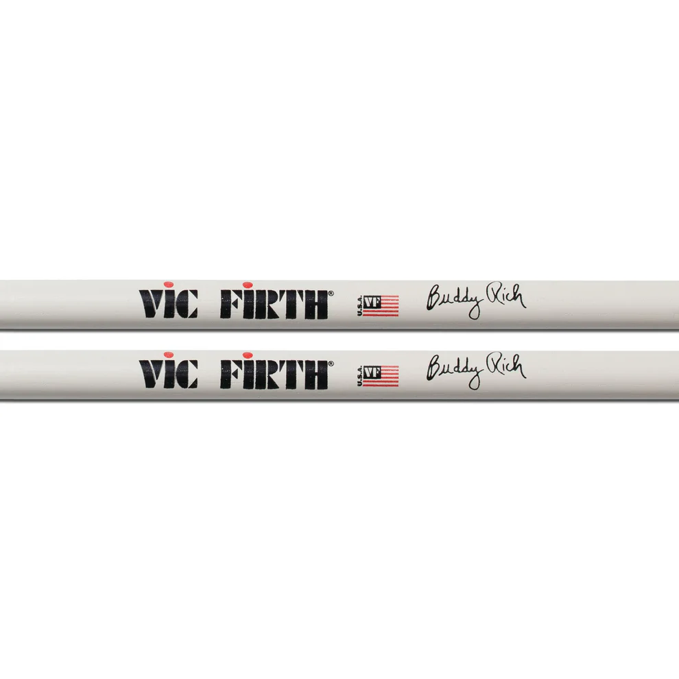 A drumming legend, the Buddy Rich. The Buddy Rich signature stick is designed as a modified 5A with a larger blended tip,neck, and shoulder for an incredible feel and balanced performance.